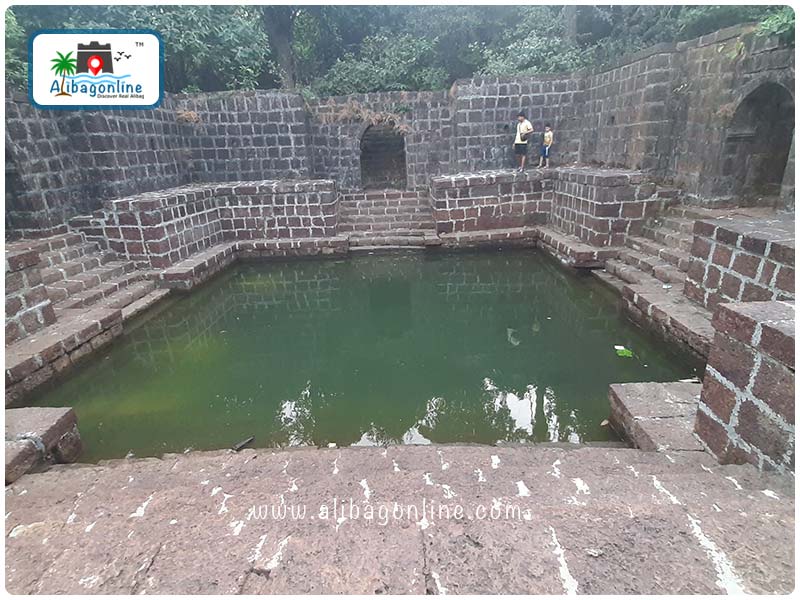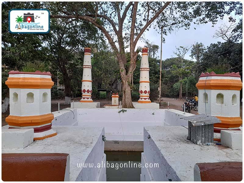 There is a spacious pond in front of the famous Shri Rameshwar Temple in Chaul. This must be the largest pond in the Alibaug area. The reflection of the temple in the green water looks very enchanting. Deepotsav is celebrated here on Tripurari Pournima, during which the pond is decorated with lamps. During the monsoon, this pond fills up completely and the locals organize swimming competitions here. There are steps on both sides to get down into the pond. A wooden pillar is buried in the middle.